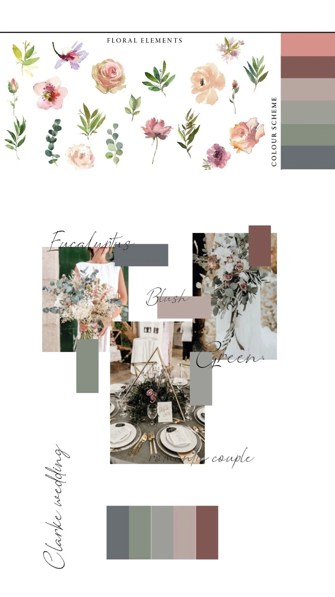 Moodboards play a huge part in the design process, I like to get an idea of your overall wedding style and incorporate any colours you plan to use within your invites to set the tone. At the initial booking stage, I will ask you to send ideas along with your wedding style in order to create a moodboard. I will then use this to design your unique invitations, whether it includes using colours, floral to illustrate, venue styles etc. If you haven’t already discovered Pinterest, it’ll become your new best friend! Link me to your wedding boards!